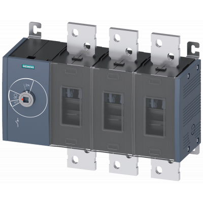 ВЫКЛЮЧАТЕЛЬ-РАЗЪЕДИНИТЕЛЬ 1000A, ТР.5, 3-ПОЛ ФРОНТ.УПР. СЛЕВА БАЗ.БЛОК БЕЗ РУЧКИ ПЛОСКИЕ КЛЕММЫ 3KD switch disconnector up to 1600 A as efficient master, emergency stop or maintenance switch. 3KD switch disconnectors up to 1600 A from Siemens offer reliable operator protection and ensure high plant availability in industry, infrastructure and buildings. As main, EMERGENCY OFF or maintenance switches, 3KD switch disconnectors reliably connect and disconnect live electrical equipment and provide a safety isolating function and isolating distance in low-voltage circuits. 1. Reliable protection from electrical accidents. 2. Rugged technology for high system availability. 3. Wide range of applications with variable connection and operating mechanism types. 4. Simple retrofitting of additional functions with an extensive range of accessories. 5. Quick installation on the standard mounting rail with frame sizes up to 200 A. 6. Efficient engineering with extensive CAx data. 7. Simple documentation with the manual configurator. 8. Suitable for wind power and solar plants. www.siemens.com/switching-devices. Siemens offers a comprehensive portfolio of protection, switching, measuring and monitoring devices, distribution systems as well as switches and sockets for safe and efficient electrical infrastructure in buildings and industry.