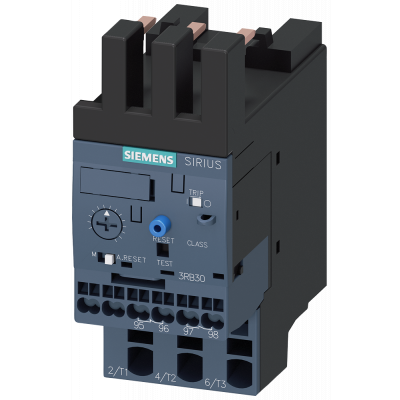 РЕЛЕ ПЕРЕГРУЗКИ 3...12 A ДЛЯ ЗАЩИТЫ ЭЛЕКТРОДВИГАТЕЛЯ, ТИПОРАЗМЕР S0, КЛАСС 10, МОНТАЖ НА КОНТАКТОР, СИЛОВАЯ ЦЕПЬ: ПРУЖИННЫЕ КЛЕММЫ, ЦЕПЬ: ПРУЖИННЫЕ КЛЕММЫ, РУЧНОЙ-АВТО СБРОС solid-state overload relay SIRIUS 3RB3 for inverse-time delayed protection of loads with normal and heavy starting against excessive temperature rises due to overload, phase unbalance or phase failure.