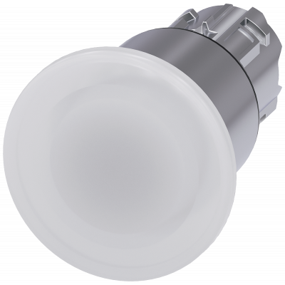 АКТУАТОР ГРИБОВИДНОЙ КНОПКИ С ВОЗМОЖНОСТЬЮ ПОДСВЕТКИ, 22MM, КРУГЛ., ГЛЯНЦЕВЫЙ МЕТАЛЛ, КНОПКА БЕЛАЯ, 40MM, 3 КОММУТАЦИОННЫХ ПОЛОЖЕНИЯ:, AFTER PRESSING IN RESET TO CENTER POSITION, AFTER PULLING OUT THE BUTTON RESET TO CENTER POSITION Mushroom pushbuttons SIRIUS ACT with large actuator for convenient operation using the whole hand.
