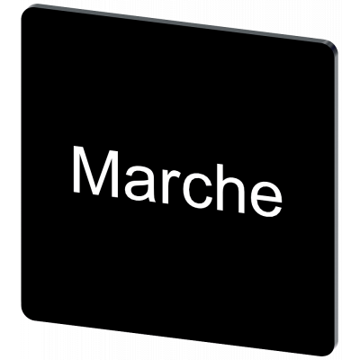 МАРКИРОВОЧНАЯ ТАБЛИЧКА ДЛЯ НАКЛЕИВАНИЯ ИЛИ ЗАЩЕЛКИВАНИЯ НА ДЕРЖАТЕЛЕ, РАЗМЕР 27 X 27MM, ЧЕРНАЯ, НАДПИСЬ БЕЛАЯ, С МАРКИРОВКОЙ: MARCHE Labeling plate for labeling the SIRIUS ACT pushbuttons and indicator lights.