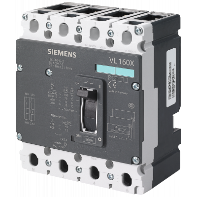 АВТОМАТИЧЕСКИЙ ВЫКЛЮЧАТЕЛЬ VL160X N СТАНДАРТНАЯ ОТКЛЮЧАЮЩАЯ СПОСОБНОСТЬ ICU=55KA/415 V AC 4-ПОЛЮСА, ЗАЩИТА УСТАНОВОК, РАСЦЕПИТЕЛЬ МАКСИМАЛЬНОГО ТОКА T