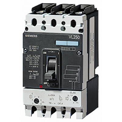 АВТОМАТИЧЕСКИЙ ВЫКЛЮЧАТЕЛЬ VL 250N СТАНДАРТНАЯ ОТКЛЮЧАЮЩАЯ СПОСОБНОСТЬ ICU=55KA/415 V AC 3-ПОЛЮСА, ЗАЩИТА УСТАНОВОК, РАСЦЕПИТЕЛЬ МАКСИМАЛЬНОГО ТОКА TM, LI IN=250A, НОМИНАЛЬНЫЙ ТОК IR=200-250A, ПЕРЕГРУЗКА II=1200-2500A, К.З. МИНИМАЛЬНЫЙ РАСЦЕПИТЕЛЬ 220 - 250 V DC НАБОР СИГНАЛЬНЫХ/АВАРИЙНЫХ КОНТАКТОВ 2HS(1NO+1NC)+1AS(1NO)