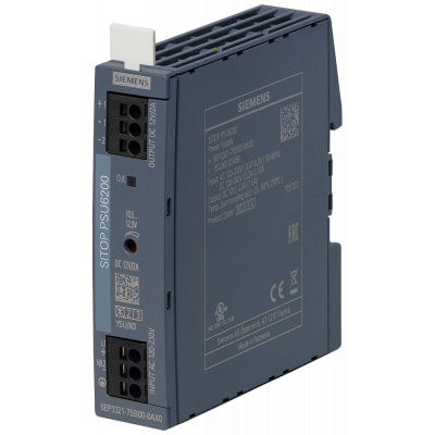 SITOP, стабилизированный блок питания PSU6200 12 V/2 A, вход: ~100-230 В / =110-250 В, выход: =12 В/2 A The 1-phase SITOP PSU6200 mini are slim and space-saving power supplies for the low performance range. They are used in distributed applications in control boxes or in small control cabinets. They are characterized by the low power loss across the entire load range. The losses are very low even in idle, which makes these power supplies ideally suited for supply of machines and plants that are often in standby operation. The switch mode power supply has a wide-range input for AC and DC networks, whereby plug-in terminals support easy electrical connection. The large temperature range offers universal application options. Regardless of the industry, regardless of the requirement – Siemens offers reliable and efficient power supplies for any plant.